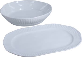 - Platter is 14" length; Serve bowl is 12" length x 2.75" depth