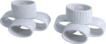 This set of eight porcelain rings are designed to prop up your napkins and are perfect for holiday hosting.