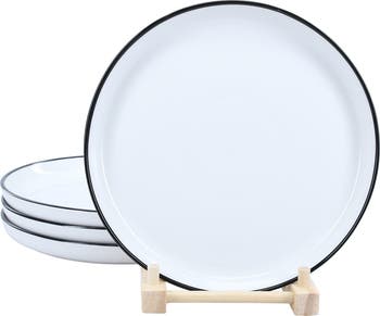 A slim border brings a farmhouse look to a classically elegant dinnerware to elevate your tablescape.