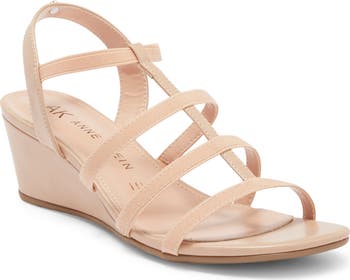 Elastic straps and a flexible grip sole enhance the comfort of a sunny-day sandal lifted by a just-right wedge heel.