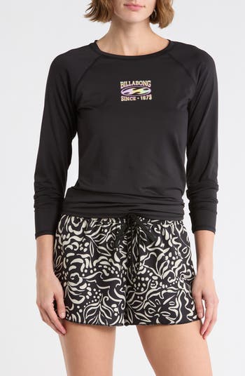 Surf, swim and stay shielded in this long-sleeve rashguard top that features a logo graphic for heritage appeal.
