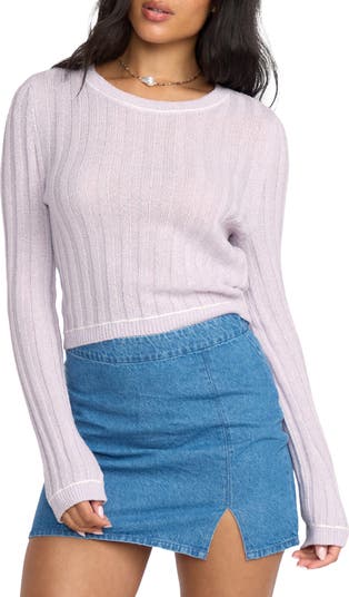 Soft and breathable for chilly beachy nights, this cropped sweater is knit with soft ribbing for a close fit.