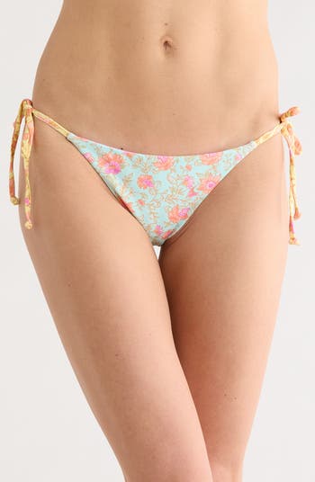 Go for a dip in these high-cut swim bottoms designed with a reversible print and a cheeky back. Slinky straps tether the sides, completing this sultry look.