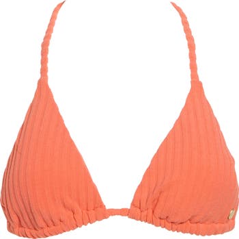 Wide‑scale ribbing adds visual intrigue to this triangle bikini top finished with ties that let you customize the fit.