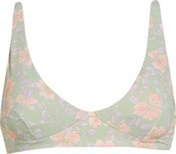 Seamed cups offer all‑day support in this bikini top covered in sweet flowers and styled with a flirty plunging neckline.