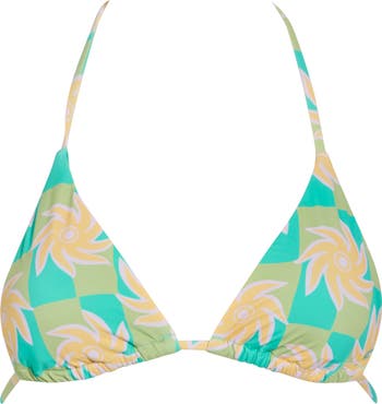 Bursting sun graphics overlay the classic checkered print on a bikini top fashioned with signature triangle cups that adjust to your desired coverage.