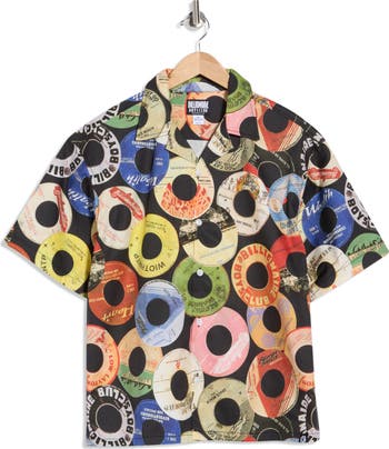 Covered in colorful CDs and wrapped in '90s nostalgia, this camp shirt made of crisp, cool cotton gives you plenty of room to groove to your own beat. Wear it on its own or layered and unbuttoned to change up your look without losing your chart-topping style.