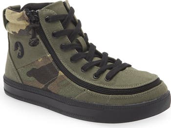 Cool camo adds a bit of street cred to a high-top sneaker that keeps your little one moving comfortably with arch support and a padded collar.