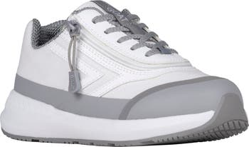 Embodying the principle of universal design, inclusive brand BILLY Footwear was founded in Seattle to help people with mobility impairments put on their own shoes. Each pair incorporates zippers that go along the side of the shoes and around the toe, allowing the upper of each shoe to open and fold over completely so the wearer can place their foot onto the shoe footbed unobstructed.