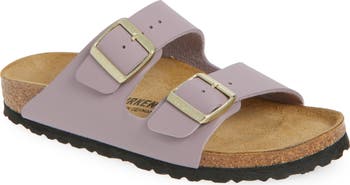 A slide sandal pairs Birko-Flor, a fabric with a leather-like finish, with a legendary footbed that mimics the shape of the foot with excellent support.
