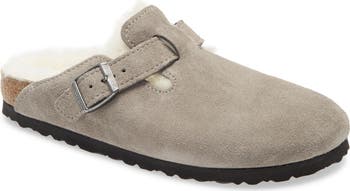 A classic suede clog gets a plush update with genuine shearling lining the interior for extra cushioning and natural moisture-wicking comfort. It's built with a natural cork-and-latex footbed contoured in the shape of a healthy foot to ensure proper weight distribution and to support the foot's natural shape and structure.