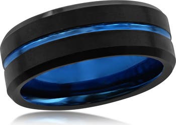 Two-tones are better than one when it comes to this black and blue tungsten ring built for durable everyday wear.