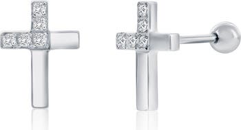 Bright-white cubic zirconia amplify the shimmer and shine of polished cross-shaped studs that bring a display of faith to everydya looks.