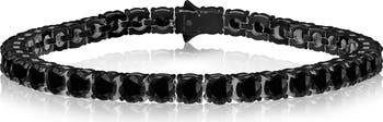 Prong-set round-cut cubic zirconia add to the shimmer and shine of a tennis bracelet that brings a sophisticated flourish to your stack.