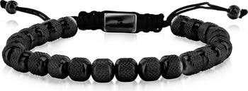 A slide closure offers easy adjustments of a bracelet strung with textured beads for visual interest.