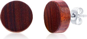 Circular blocks of wood give a rough and rugged attitude to stud earrings that are a perfect way to update your jewelry collection.