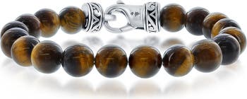 A great gift or everyday accessory, this polished tiger's eye stone bracelet features a durable stainless steel clasp with subtle filigree for luxe style.