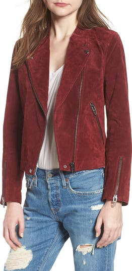 Incredibly soft and always in style, this luscious suede jacket is a wardrobe must-have with its cool moto-inspired silhouette and gleaming hardware.
