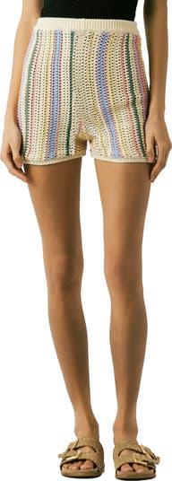 Airy open stitching brings breathable charm to these soft sweater shorts knit with pastel stripes.