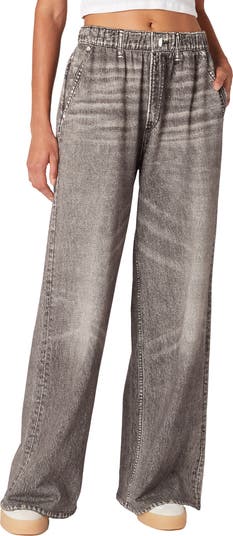 A masterpiece of deception, these nicely draped pull-on pants are an oh-so-comfortable canvas for a photorealistic print of wide-leg jeans.