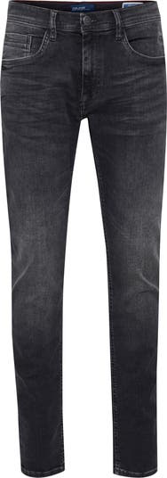 Elevate your weekly rotation with these slim-cut straight-leg jeans made from subtly faded and whiskered denim with a hint of stretch.