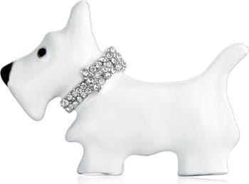 Cubic zirconia stones add glittering detail to this white Westie dog shaped pin.