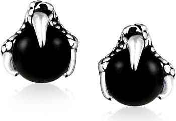 Glass orbs are held in scaly dragon claws on these unique stud earrings.