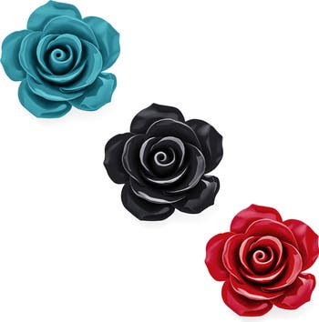 Add a lovely touch to any look with this set of floral pins made from smooth enamel.