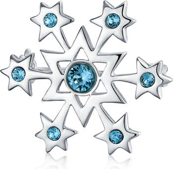 Make a statement this holiday season with frost inspired blue cubic zirconia stones set in a sterling silver snowflake pin.