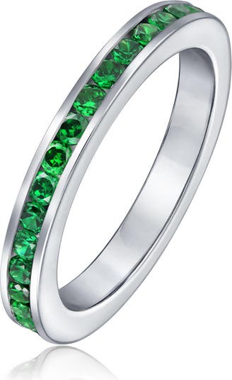 London blue round sterling silver stones create texture and eye-catching glam in the center channel of this sterling silver ring.