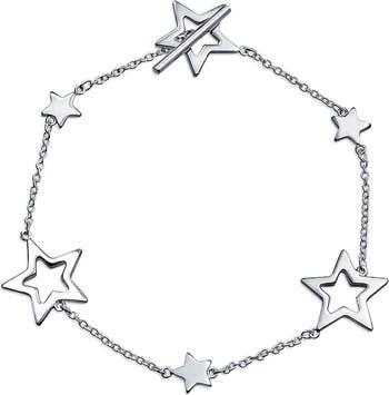 Accessorize your outfit with a sterling silver bracelet featuring star charms.