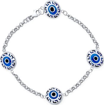 Bring good vibes to your wardrobe with this vibrant evil-eye station bracelet crafted from polished sterling silver.