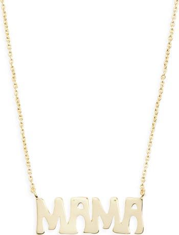 A sterling silver necklace plated in 18-karat gold is enhanced by a block letter pendant that makes a great gift for any mama in your life.