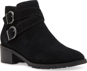 Dual buckle straps double down on the rugged yet refined style of a waterproof block-heel bootie complete with comfort-focused memory foam cushioning.