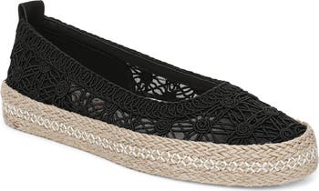 Bring SoCal spirit to an intricate ballet flat updated with an espadrille-style woven jute sole, intricate lace overlay and laidback braided rope detailing.