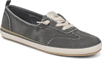 Bring SoCal spirit to a casual slip-on flat featuring a textured twill upper with signature frayed seams, slip-on fit for quick getaways and a comfy round toe.