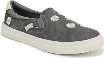 Embroidered flowers sweeten this '90s-inspired canvas slip-on sneaker framed by dual elastic gores and grounded by a lightweight sole.