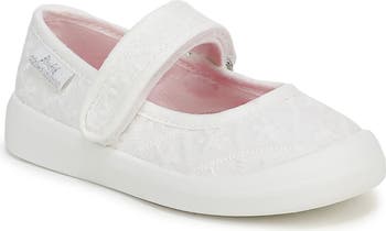 A well-cushioned footbed delivers on the promise of practical comfort to a Mary Jane sneaker finished with metallic fabric and an adjustable vamp strap, sure to be a wardrobe favorite.