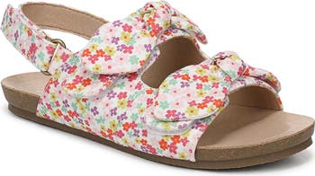 Colorful ditsy flowers bloom upon the canvas straps of this slingback sandal fitted with a cushioned footbed.