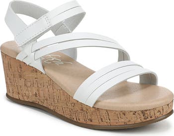Faux-leather straps define this sandal set on a cork-inspired platform wedge made for stylish little strides.