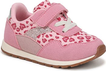 Mixed media finishes sweeten the sporty style of a low-top sneaker designed with a cushioned footbed and grippy sole to keep up with all-day play.
