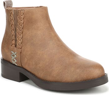 Braided trim adds kid-approved charm to a side-zip boot lifted by a low, stacked heel.