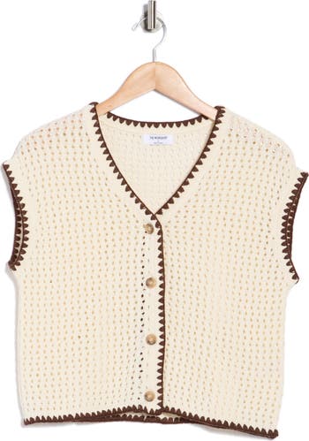 Contrast stitching adds subtle definition to a loosely knit vest with a button-front closure and relaxed fit.