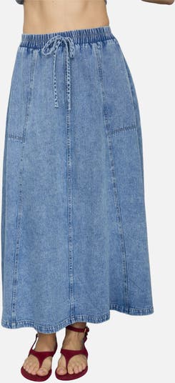 Made from cotton denim enhanced with linen, this soft maxi skirt features on-seam pockets and a drawstring waistband.