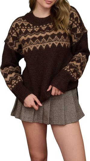 Dropped shoulders and a slounchy fit bring endless comfort to this wool-kissed crewneck sweater with a traditional Fair Isle pattern for timeless style.