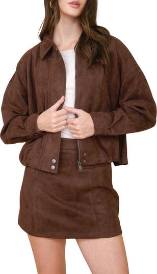 Update your cold-weather wardrobe with this faux-suede jacket featuring dropped shoulders and an adjustable drawcord hem.