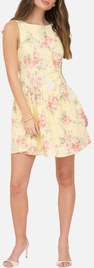 Perfect for your next garden party or weekend event, this sleeveless minidress is covered in blooms and styled with a dropped waist.