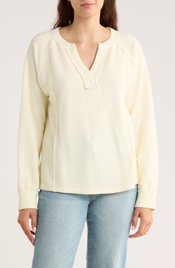 This long-sleeve top features a split neckline and is designed in a wide, relaxed cut with a stonewashed finish for a laid-back, lived-in feel.