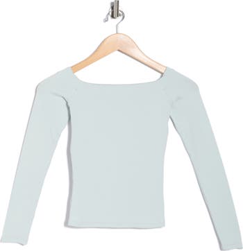 Refresh your collection of wardrobe staples with this fitted top cut in a long-sleeved silhouette that dips off the shoulder.