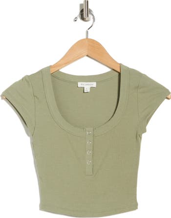 Refresh your essentials with this cap-sleeve henley cut from a lightweight ribbed knit in a flirty cropped silhouette.